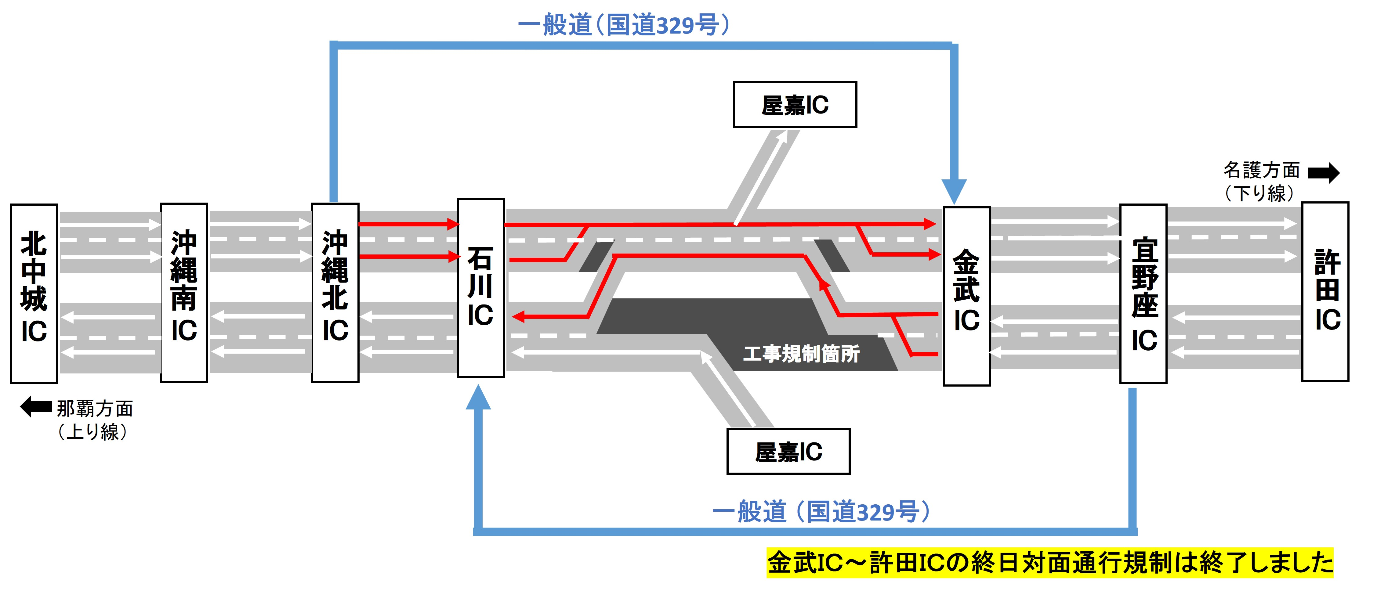 対面通行規制解除に伴い、所要時間提供は終了しました。